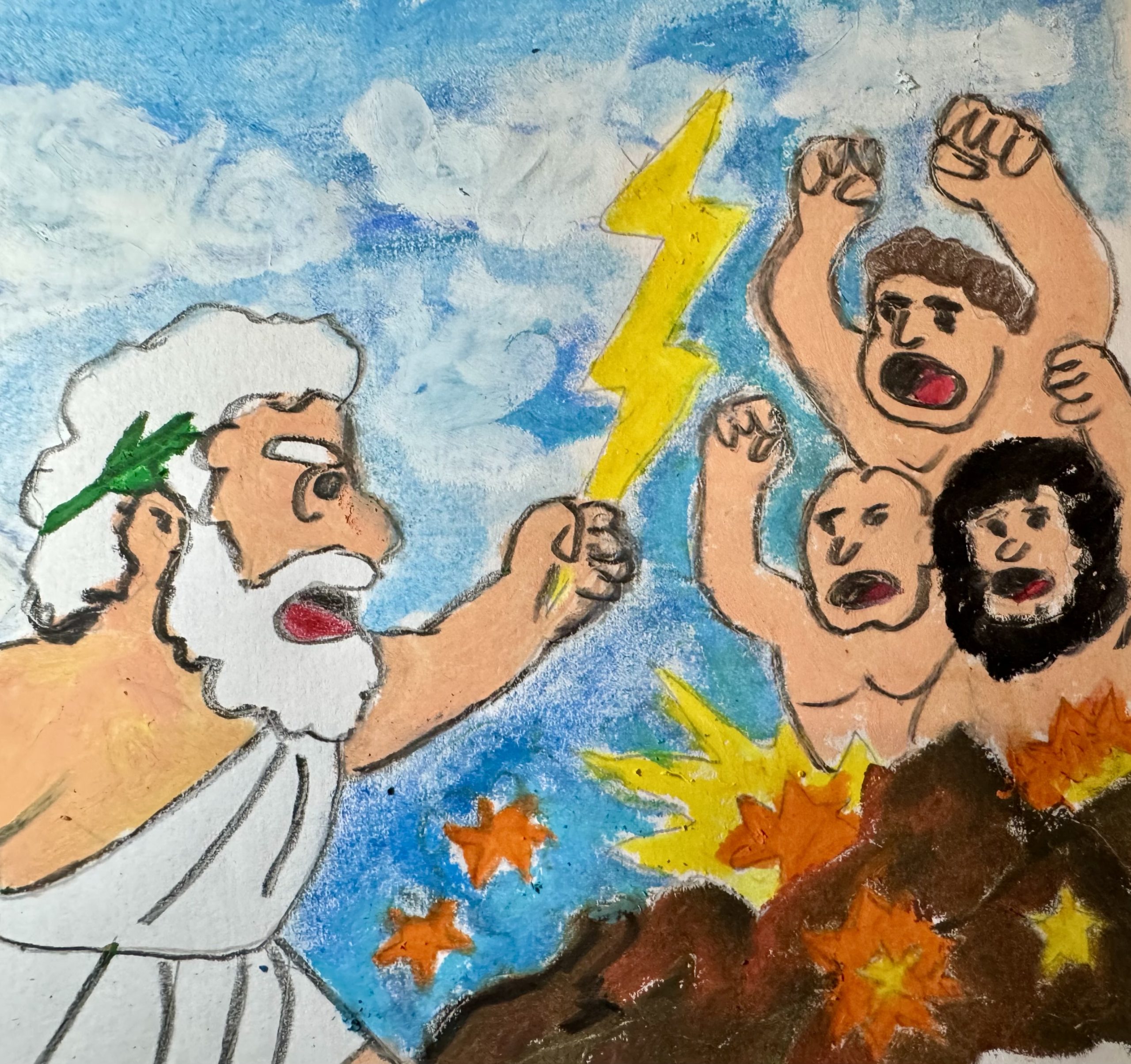 Disegna Zeus con i suoi fratelli, mentre scagliano fulmini e stelle contro i Titani!