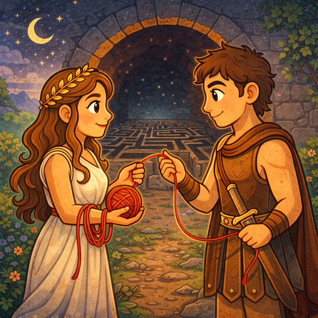 Arianna lo incontrò di nascosto e gli disse: “Io so come aiutarti… ma devi promettermi che tornerai vivo.”